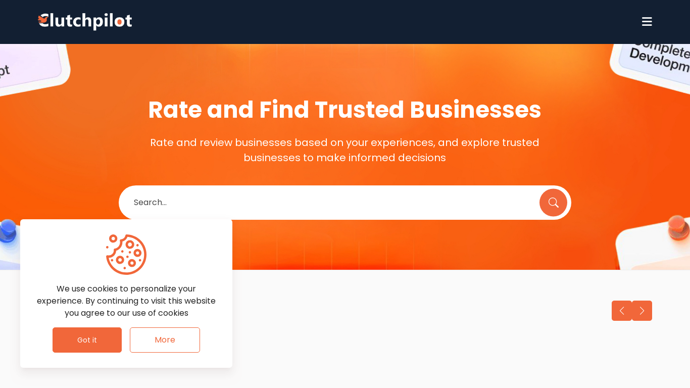 Text: ClutchPilot is a B2B business listing & review platform helping companies find trusted service providers in web design, hosting, SEO, and digital marketing through real reviews & ratings.